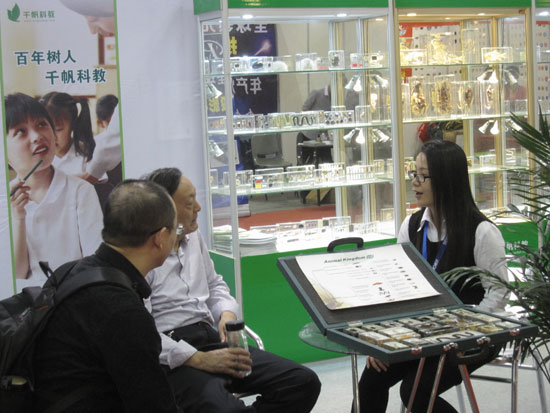 展會現(xiàn)場-千帆全面展示了新型包埋標本、中小學標包埋標本、學前教育益智等系列產品