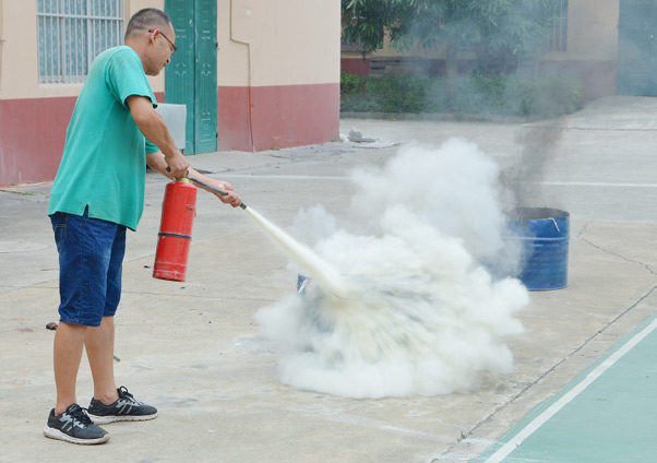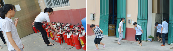 演練前消防設(shè)備清點 在消防安全員的指揮下應(yīng)急疏散演練