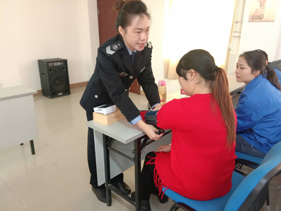 趙老師現(xiàn)場指導(dǎo)血壓計的使用方法